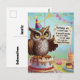 Cartão Postal Coruja usando chapéu de aniversário em cima de bol