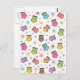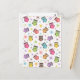 Corujas e padrões de flores engraçados, cor-de-rosa-quente, chiclete cor-de-rosa-bolha, azul-claro, verde-claro, roxo suave, amarelo-alaranjado, escuro e mais claro, cores brancas, fundo branco. Impressão de imagem