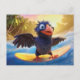 Cartão Postal Corvo Surfando no Paraíso Tropical com Palmeiras