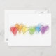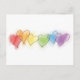 Uma fileira de corações coloridos do arco-íris em tons de aquarela.