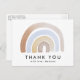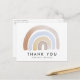 Obrigado arco-íris moderno, os cartões postais com um arco-íris de cor-d'água em tons de marrom, azul e ouro com "Obrigado" mostrado abaixo em letras negras. Personalize o obrigado arco-íris que você faz o cartão-postal adicionando seu nome ou texto personalizado. A parte traseira do cartão-postal apresenta o seu endereço de retorno com bastante espaço para a sua mensagem escrita à mão. O obrigado arco-íris de aquarela que você postais é perfeito para usar para chás de fraldas, festas de aniversário e muito mais!