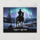 Season's Greeting country western cowboy with a beautiful winter scene of the northern lights. A pretty Christmas holiday postcard.