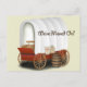 Change of address postcard featuring a covered wagon drawing reminiscent of the pioneers' mode of travel in the old west. We've Moved On! rope-effect text is an image and can be deleted and replaced with different text. Customize the back with your new address. Choose a different font, size, and color. Delete any unwanted text fields before submitting.
