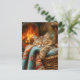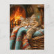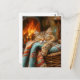 Cartão Postal Cozy Cat Sleeping in Basket by Warm Fireplace