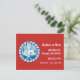 Um gráfico de crachá de barbearia, branco e azul, em estilo vermelho, em fundo vermelho. Tem uma aparência moderna e pode ser uma ferramenta de marketing excelente para a barbearia ou para o negócio de aliciamento de outros meios. Personalize com os detalhes da empresa na frente e atrás.