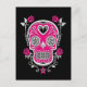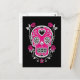 Cartão Postal Crânio branco e rosa com Rosas em preto