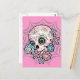 Crânio de açúcar Dia de los Muertos desenhado em cores pastéis com flores colocadas em uma teia de aranha.