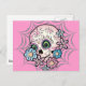 Crânio de açúcar Dia de los Muertos desenhado em cores pastéis com flores colocadas em uma teia de aranha.