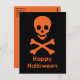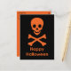 Um crânio laranja e ossos cruzados para um Halloween.