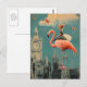 Cartão Postal Criança de fantasia surreal corre num Flamingo ros