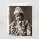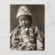 Retrato venenoso de uma criança indiana de Wishham, sentada, vestindo um cesto como chapéu, vestido de xadrez de algodão e miçangas de concha decoradas com dólares de prata. Foto c1910 de Edward S. Curtis, LOC.