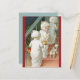 Este cartão mostra uma ilustração antiga de três crianças pequenas dando gorjetas nas escadas com um cachorro no dia de Natal. Aproveite seu novo cartão-postal de Natal para crianças.