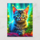 Bonito gatinho sentado em frente à abertura das árvores de Natal personalizado cartão postal de Natal.