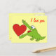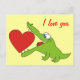 Cartão Postal Crocodilo Bonito com Cartão-Postal de Amor Cardíac