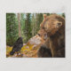 Cartão Postal Crow Raven provocando Grizzly Bear - Cartaz
