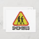 Um design legal e engraçado com duas pessoas caminhando assistindo em seus smartphones como zombies e a citação "Cuidado com os Smombies".
