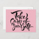 Esta design apresenta uma frase encorajando você a cuidar de si mesmo.