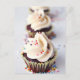 Uma fotografia moderna de três cupcakes em uma fila. Cada cupcake de chocolate tem um delicioso glacê de baunilha e brilhos coloridos.