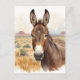 Mande um toque de charme desértico com este design de burro de aquarela. Apresentando um burro curioso contra uma paisagem sudoeste de mesas e tons de terra quente, ele combina personagem rústico com detalhes artísticos suaves para um cheio de cena de personalidade.