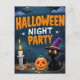 Cartão Postal Cute Black Cat Witch Halloween Night Party