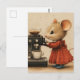 Cartão Postal Cute Brown Mouse Makes Coffee