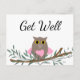 Coruja com coração rosa fofo em um ramo, cartão postal de se recuperar script.