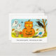 Cartão Postal Cute Cartoon Cat Sitting in Pumpkin Costume