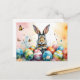 Cartão Postal Cute Easter Bunny with Colorful Painted Eggs