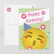 Cartão Postal Cute Emoji de Beijo com Bolinhas Verdes Feliz Aniv