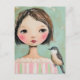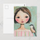 Cartão Postal Cute Girl With a Bird on Her Shoulder