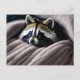 Cartão Postal Cute guaxinim aninhado em um cobertor macio