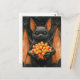Cartão Postal Cute Halloween Bat Cat With Candy