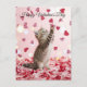 Cartão Postal Cute Kitten Catching Valentine Heart Petals