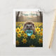 Cartão Postal Cute March Hedgehog with Aquamarine Heart