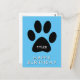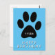 Cute Paw Print Azul Feliz aniversário Cartão postal. Este cartão postal de aniversário para crianças apresenta uma impressão de pata de cachorro preta em um fundo azul. Personalize o cartão postal com seu nome e você também pode alterar o texto Feliz aniversário.