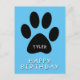 Cartão Postal Cute Paw Print Azul Feliz aniversário