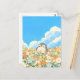 Brighten someone's day with this heartwarming scene featuring an adorable, chubby penguin chick peeking out from a lush field of vibrant orange and yellow blossoms. The digital illustration is rendered in a soft, painterly aesthetic, showcasing a warm and cheerful palette of sky blue, creamy white, and sunny citrus tones. Towering, fluffy white clouds drift across a brilliant blue sky, creating a whimsical and airy atmosphere. The penguin’s sweet, curious expression and the delicate floral textures evoke a sense of peaceful springtime joy. This postcard serves as a beautiful canvas for a heartfelt handwritten message or a serene mini-print to accent your workspace gallery wall. Whether it’s traveling through the mail to a loved one or pinned to your inspiration board, it brings a touch of calm to any setting.