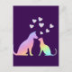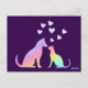 Cartão Postal Cute Rainbow Cat and Dog Silhouette Love Purple To