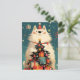 Cute Samoyed dog smiling beside Christmas trees decorated with colorful ornaments and presents. Creating a warm and joyful holiday mood perfect for Christmas illustration themes.