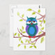 Cartão Postal Cute sleepy owl on a tree cartoon