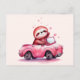 Cartão Postal Cute Sloth Driving a Pink Convertible