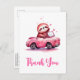 Cartão Postal Cute Sloth in a Pink Convertible Thank You