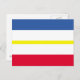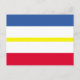 Cartão postal com a bandeira de Mecklemburgo-Pomerânia Ocidental; desenho com cinco faixas horizontais de vermelho, branco, azul e amarelo