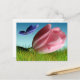Cartão Postal da Borboleta Roxa Tulipa Rosa da Pri