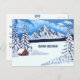Um cartão postal com uma bela cena de inverno, incluindo montanhas de neve, cabana russa e neve cobertas por todos os vergreens. A imagem pode ser personalizada. Você também tem a opção de adicionar texto. Arte original por W.B.