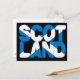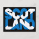 Imagem postal da "SCOTLAND" em caracteres negros misturada com a bandeira da Rua Andrew sobre fundo preto
