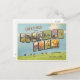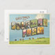 Um cartão postal estilo retrô com fotos da Fazenda Solomon.