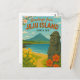 Vista cênica da ilha de Jeju, Coreia com estátua, flores, costa e montanha