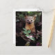 Cartão postal de uma marta espreitando por entre a vegetação rasteira.