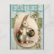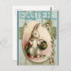 Um Cartão-postal da Páscoa Vintage com fundo de madeira e flores.